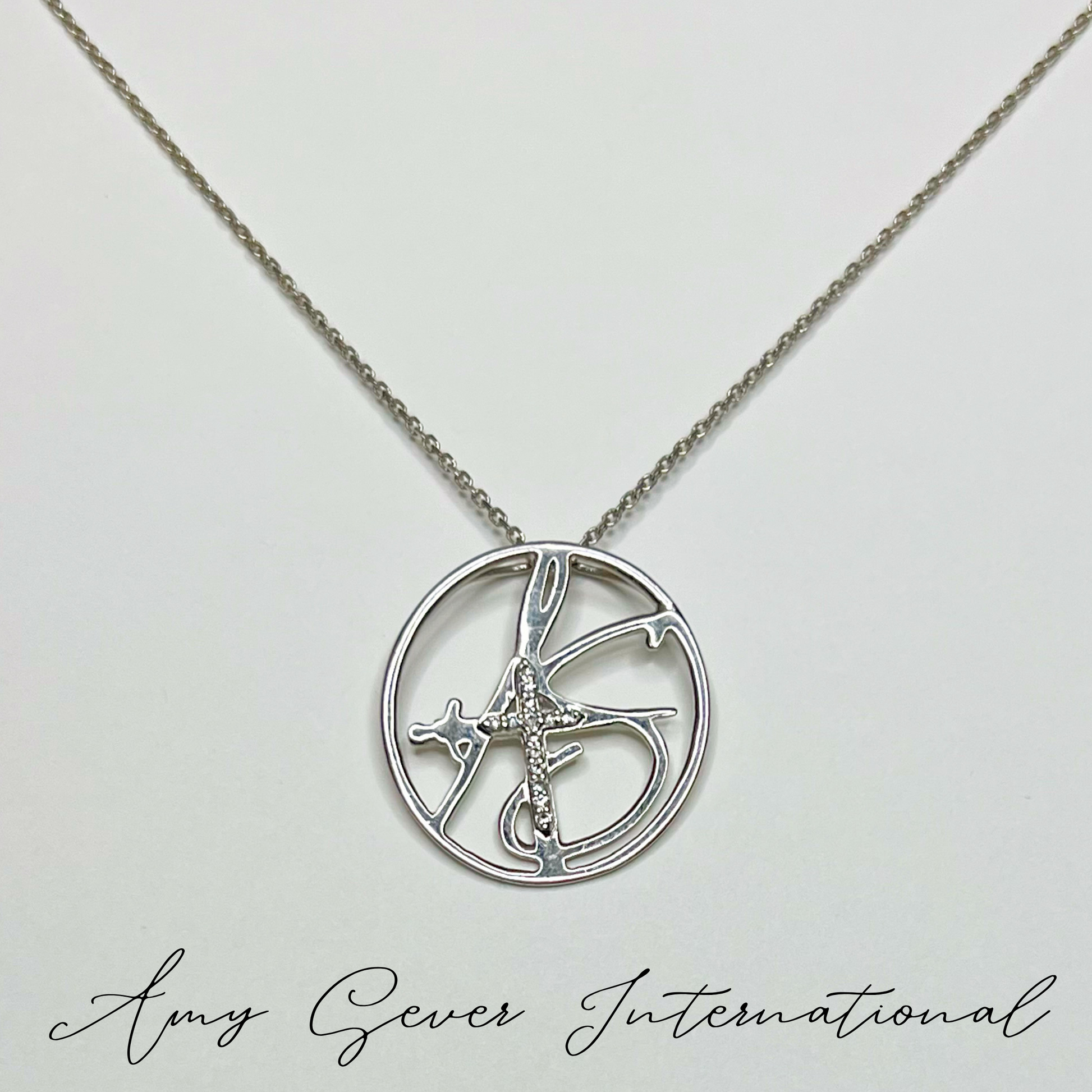 10K Solid White Gold Diamond Amulet with 18” Chain